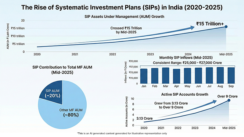 • SIP Assets Under Management crossed ₹15 trillion by mid-2025