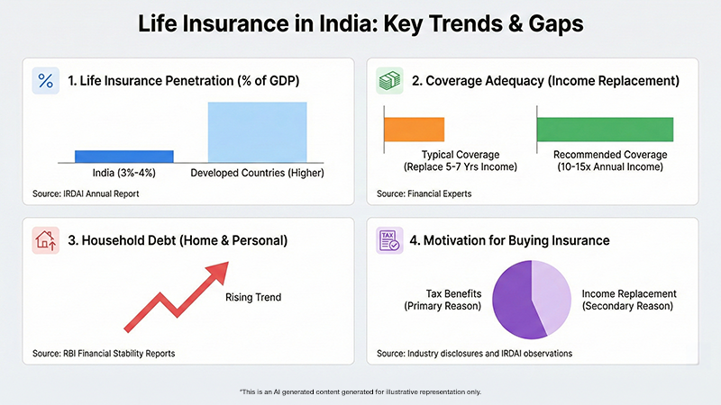 According to the Insurance Regulatory and Development Authority of India (IRDAI), life insurance penetration in India remains relatively low compared to global averages, highlighting a significant protection gap. The gap is not about aspiration. It is about preparedness.